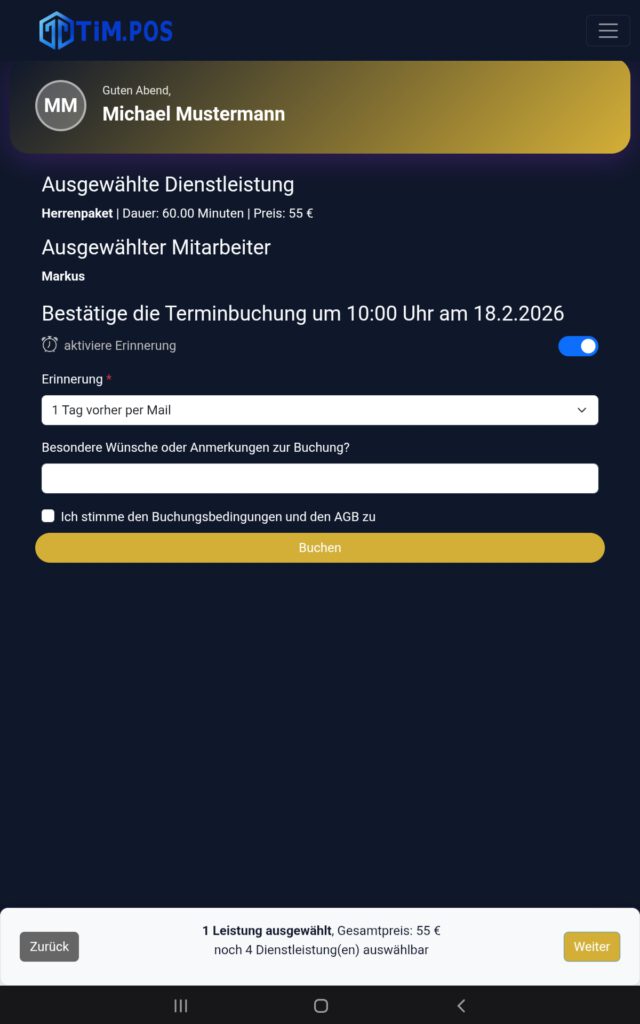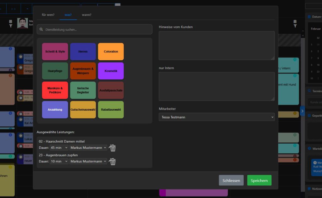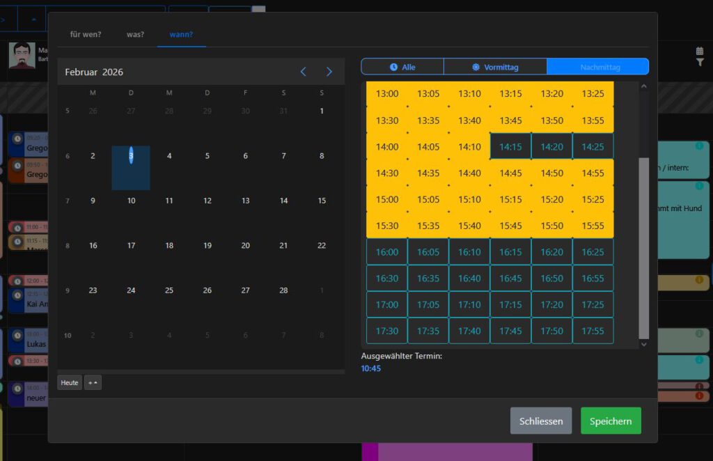 Tragen Sie die Termine selbst ein, oder lassen Sie Ihre Kunden online einen Termin buchen.