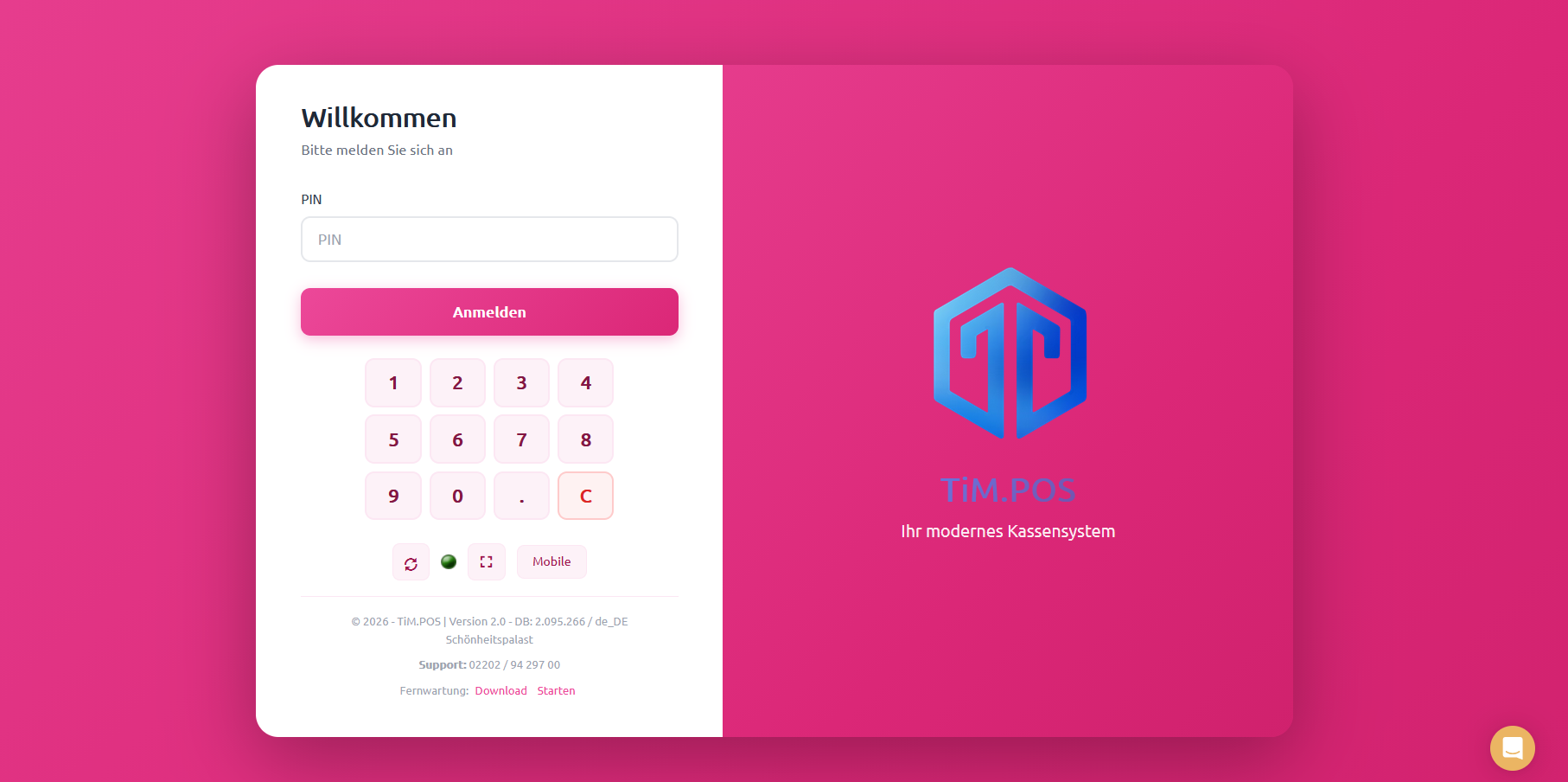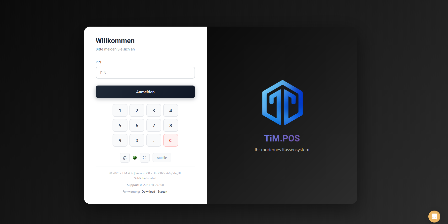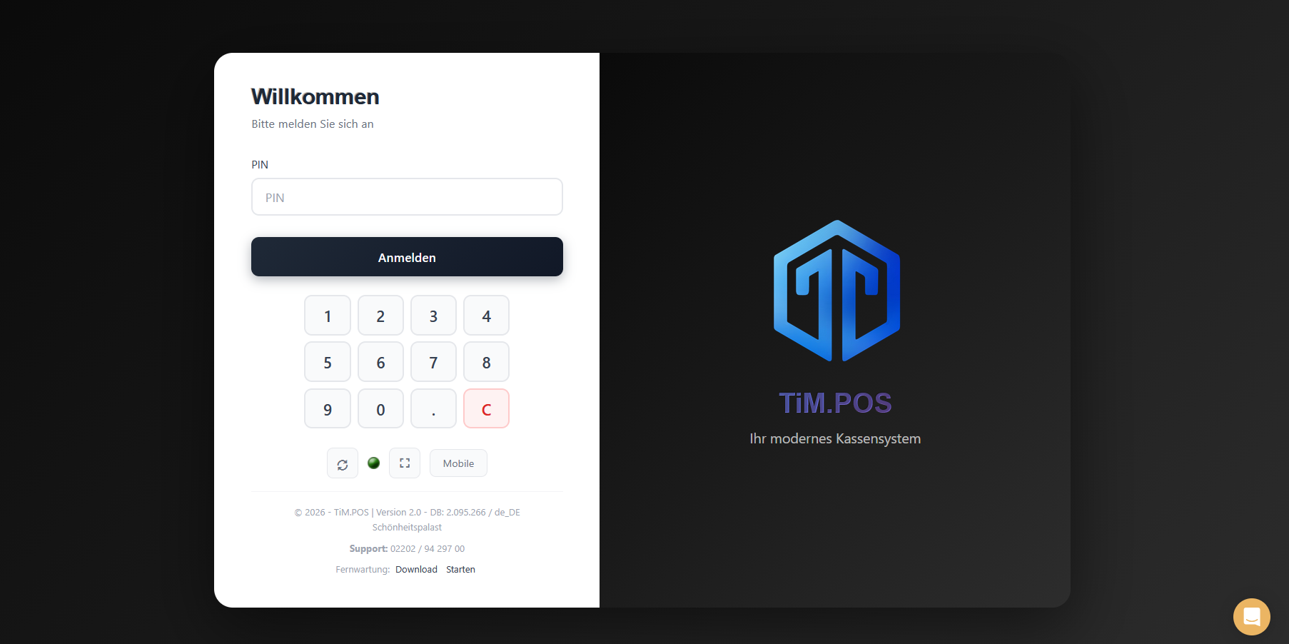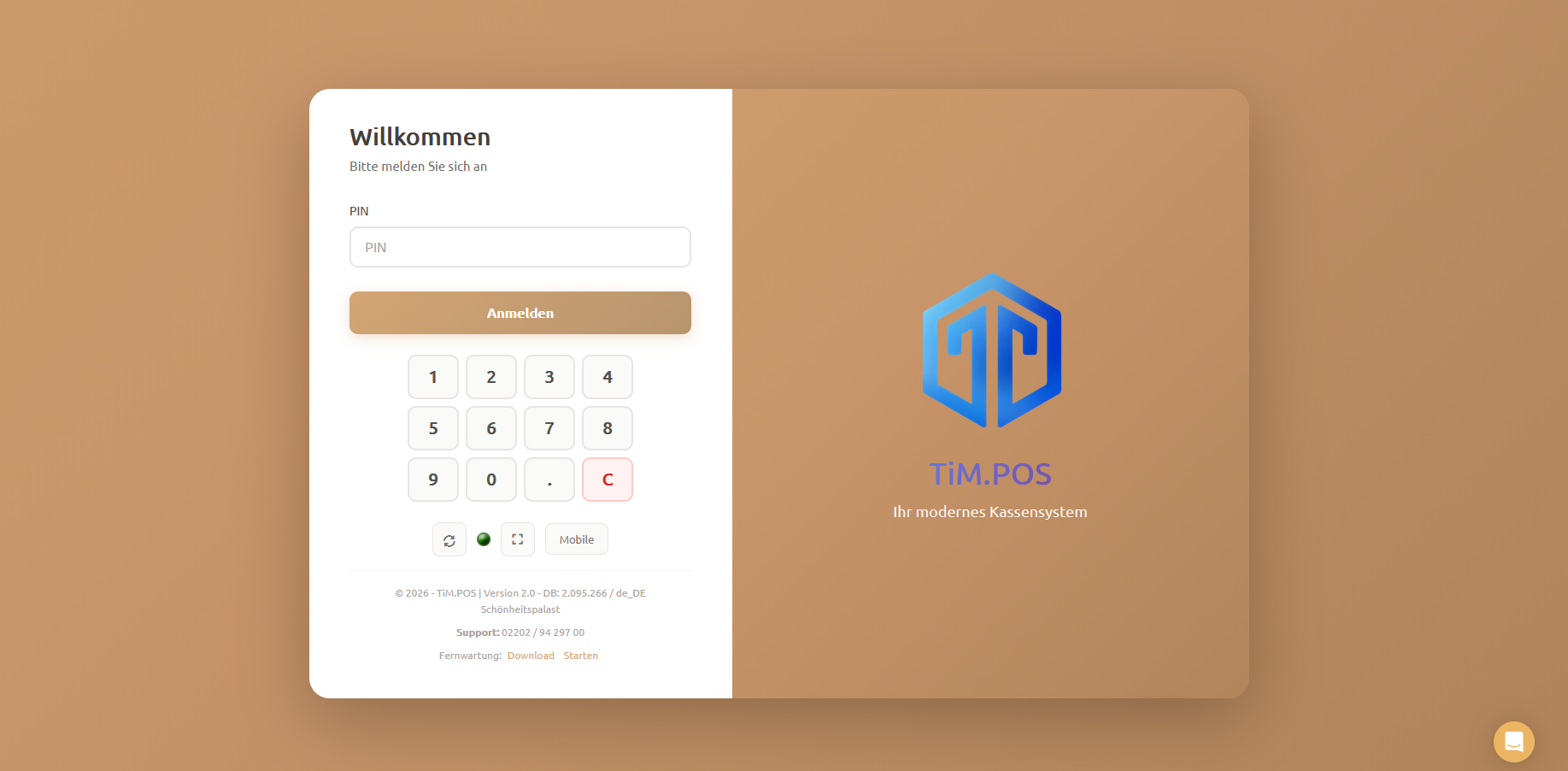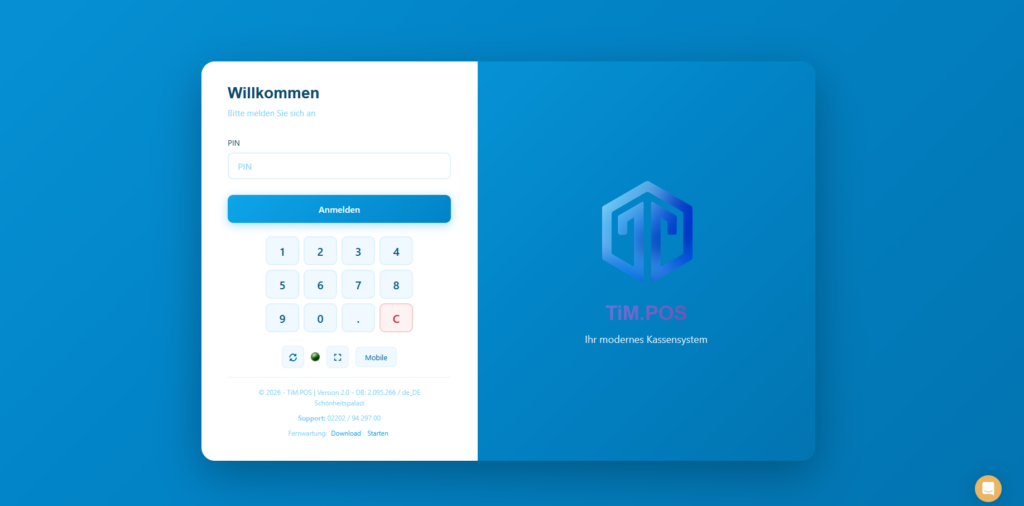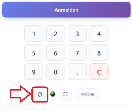 Um das Design anschließend zu aktivieren, loggen Sie sich nun aus der Kasse aus und klicken Sie auf den Synchronisierungsbutton (Kreispfeil im Login-Fenster unter der PIN-Eingabe).