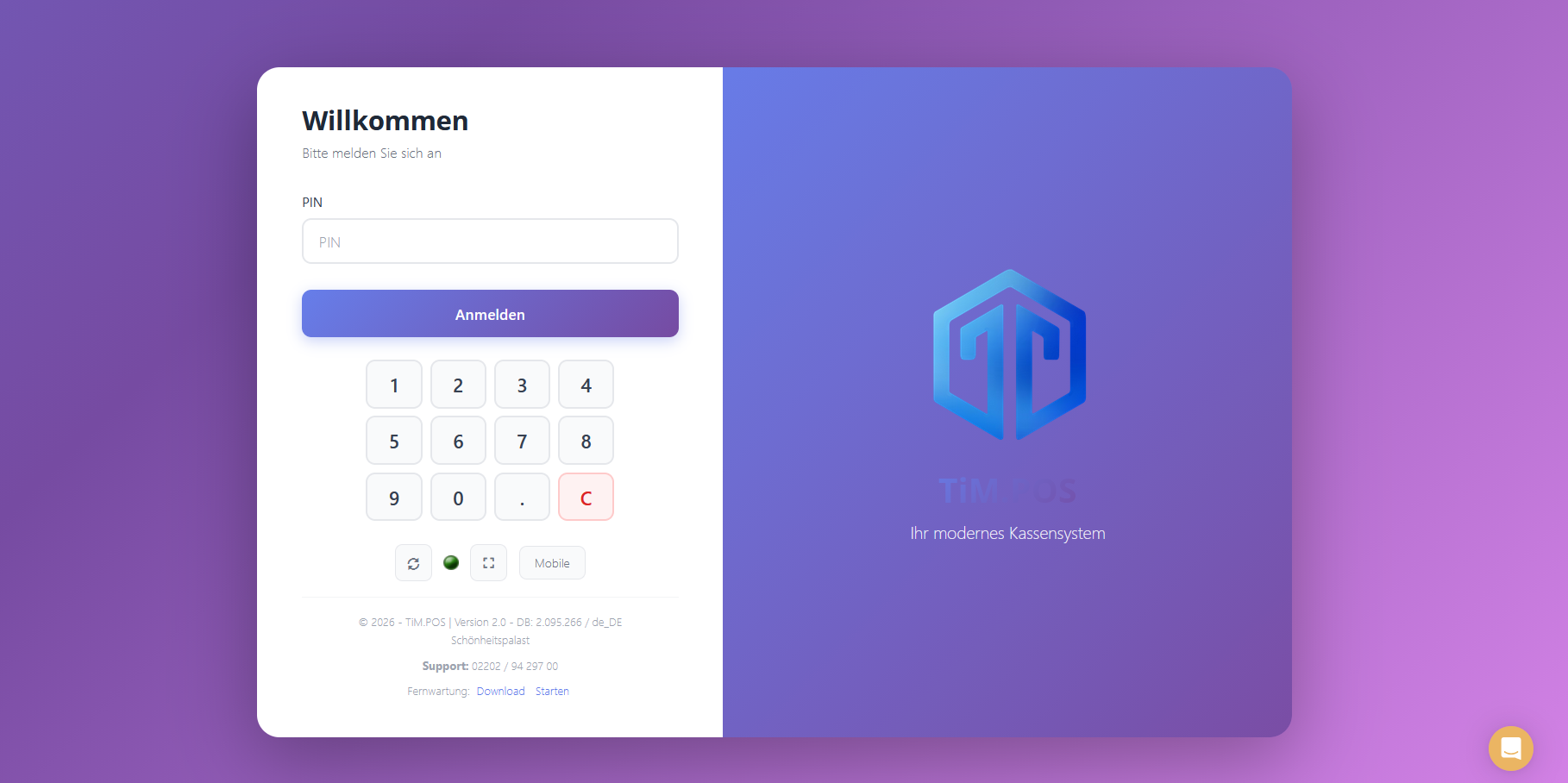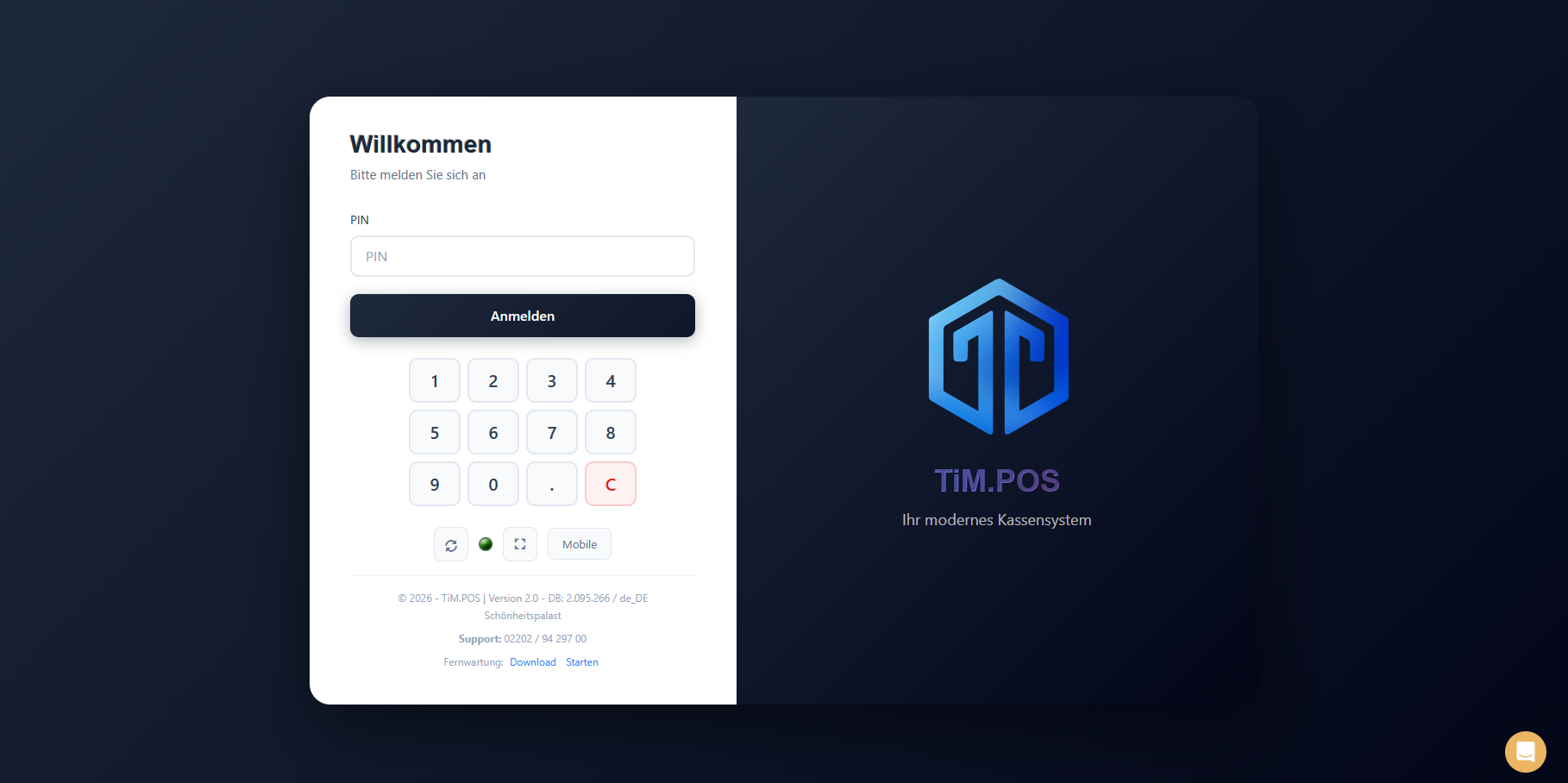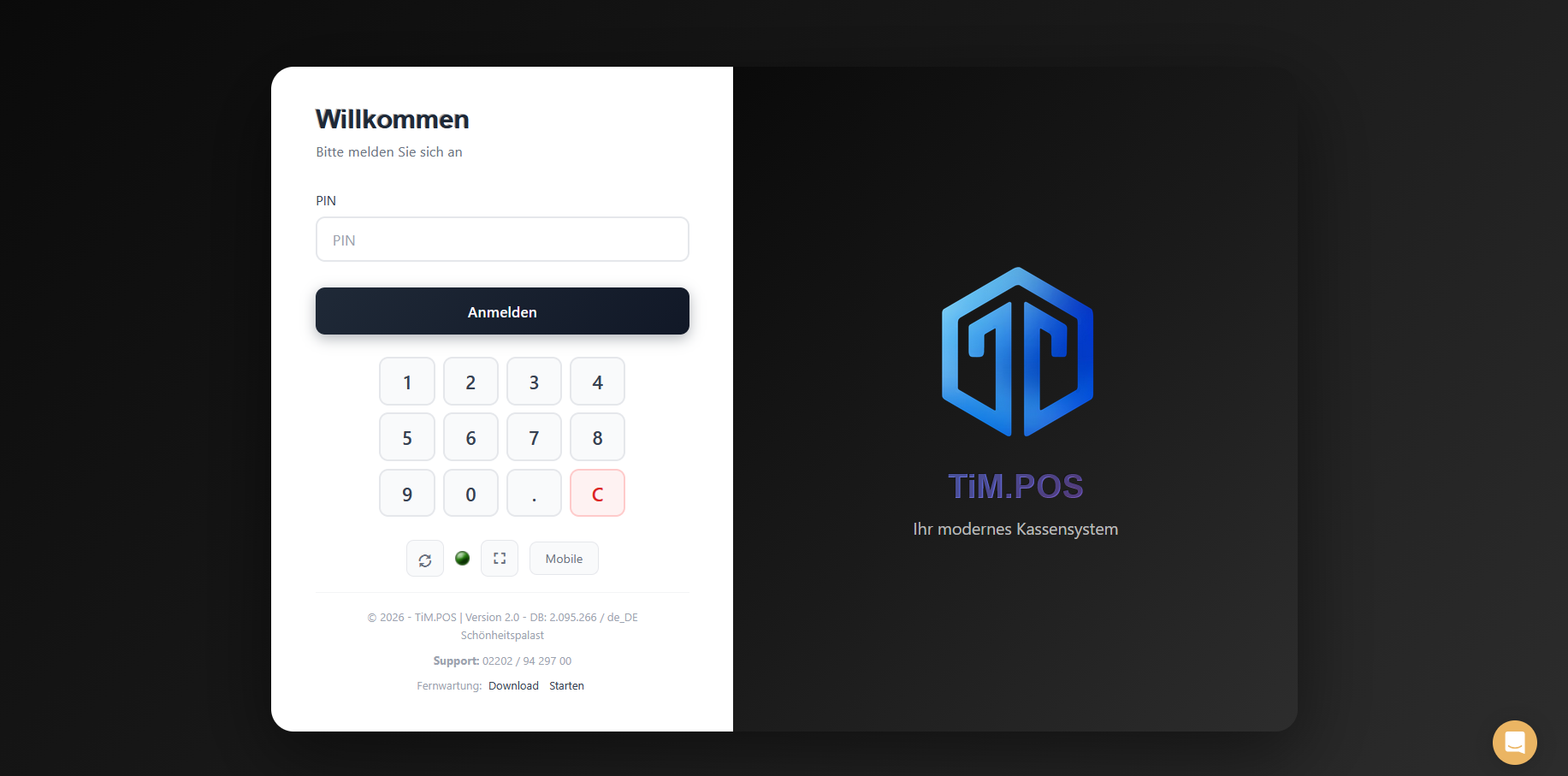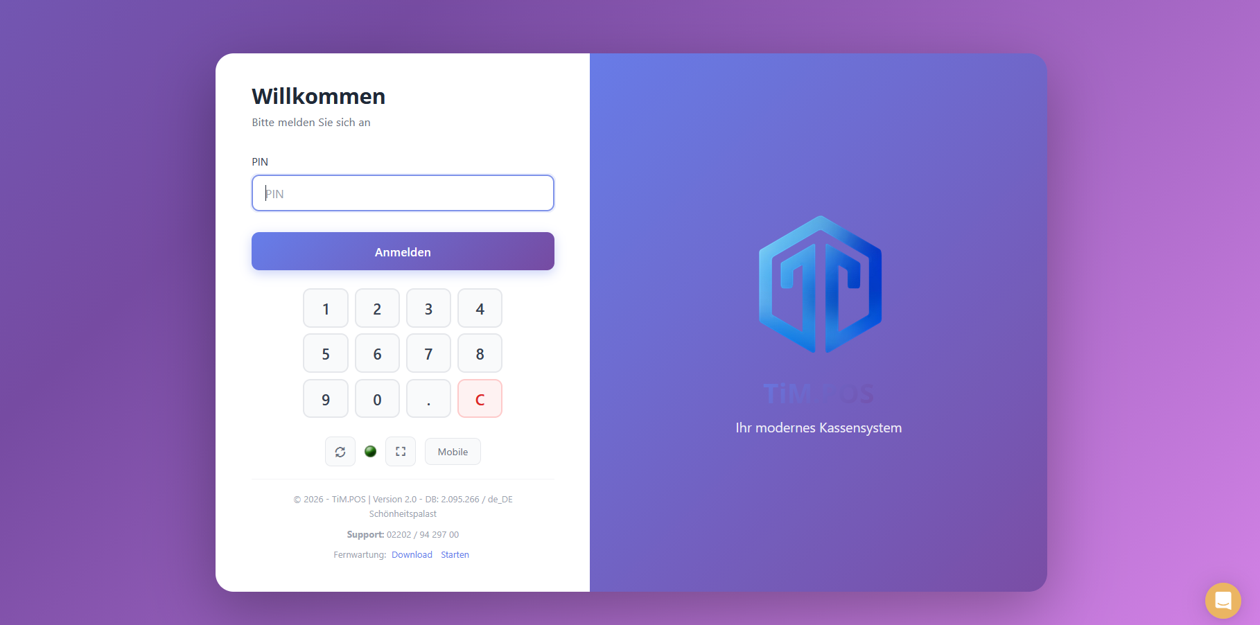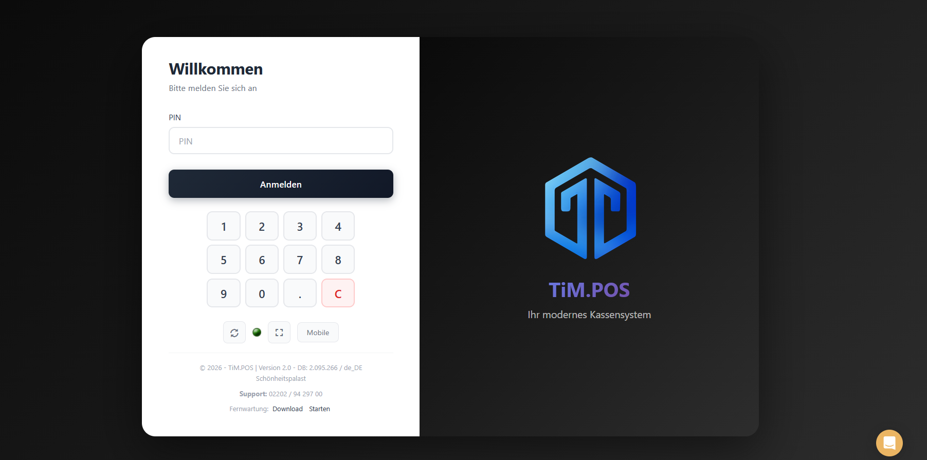 Um das Design anschließend zu aktivieren, loggen Sie sich nun aus der Kasse aus und klicken Sie auf den Synchronisierungsbutton (Kreispfeil im Login-Fenster unter der PIN-Eingabe).