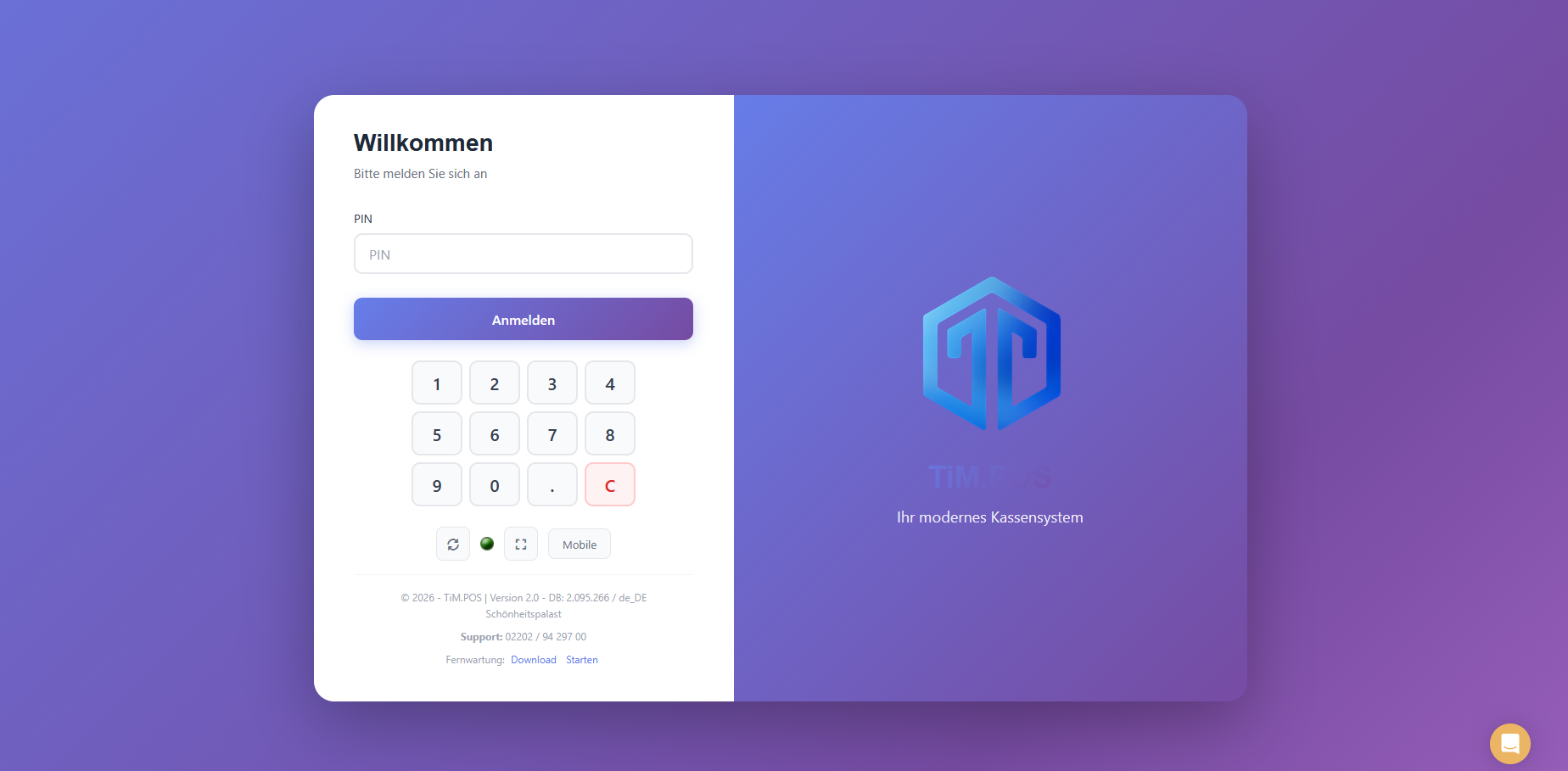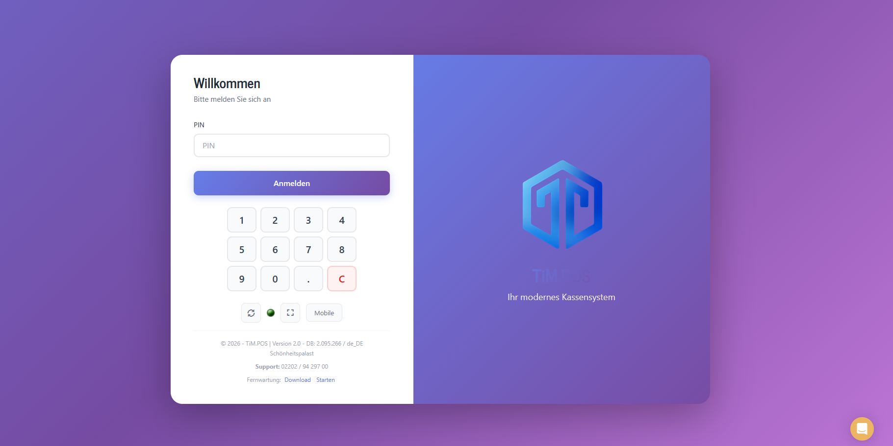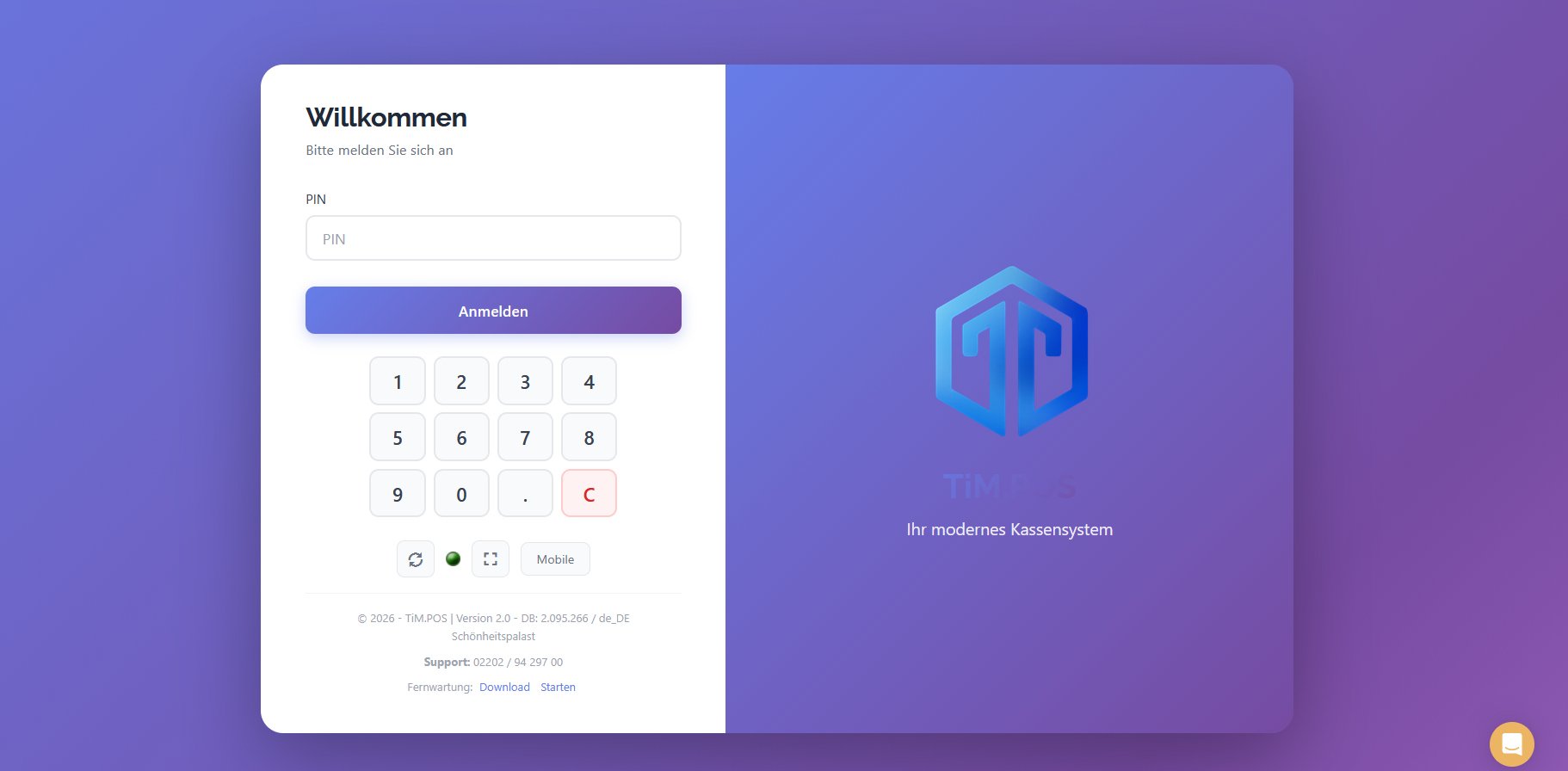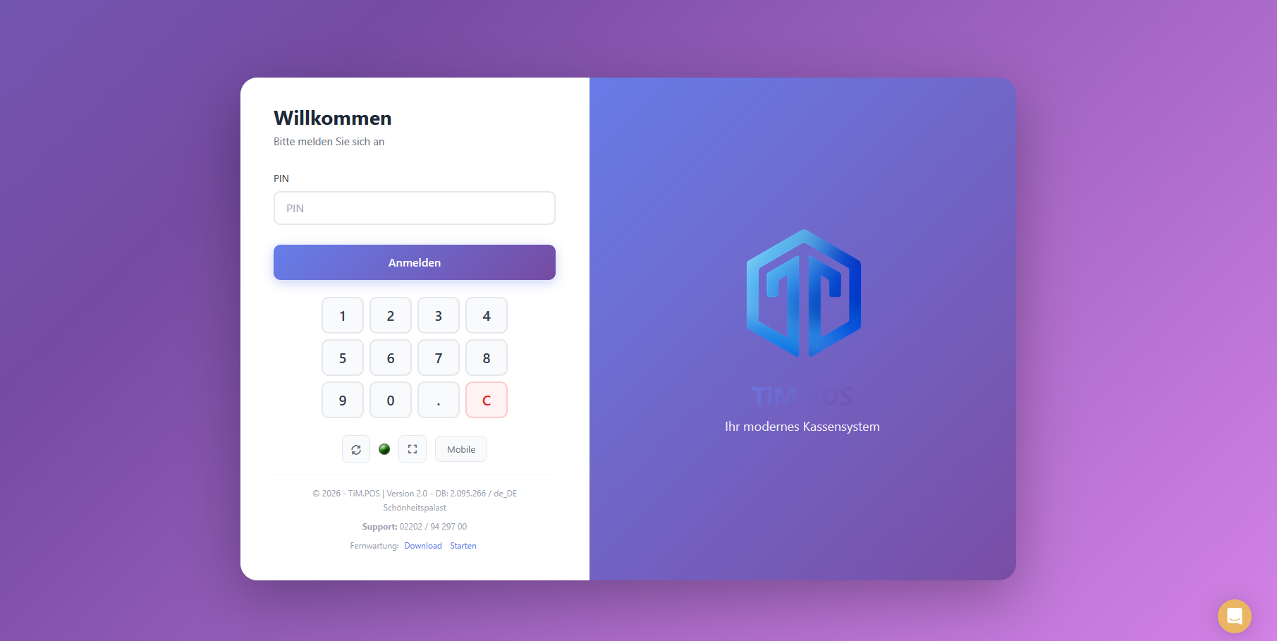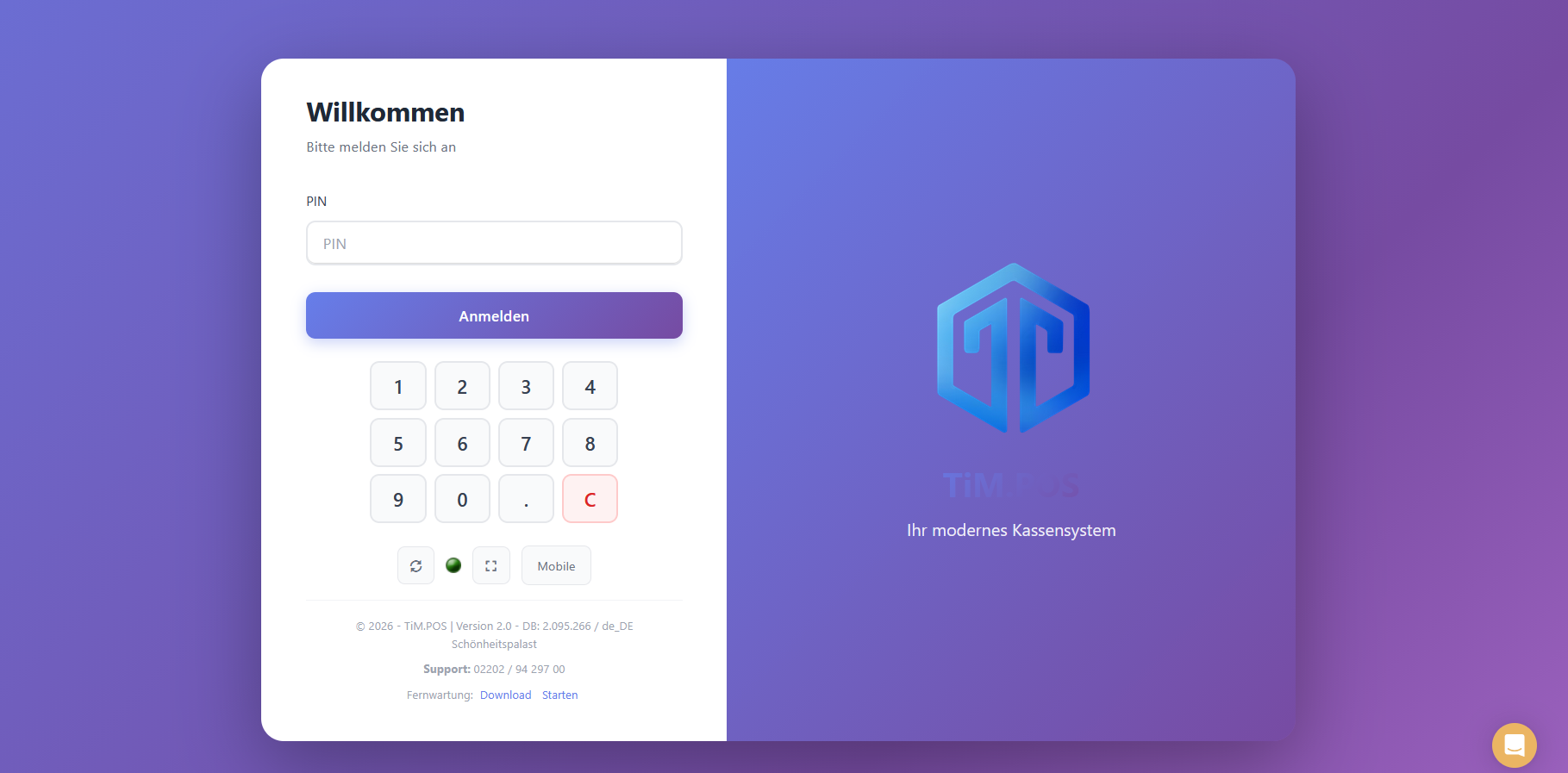 Um das Design anschließend zu aktivieren, loggen Sie sich nun aus der Kasse aus und klicken Sie auf den Synchronisierungsbutton (Kreispfeil im Login-Fenster unter der PIN-Eingabe).